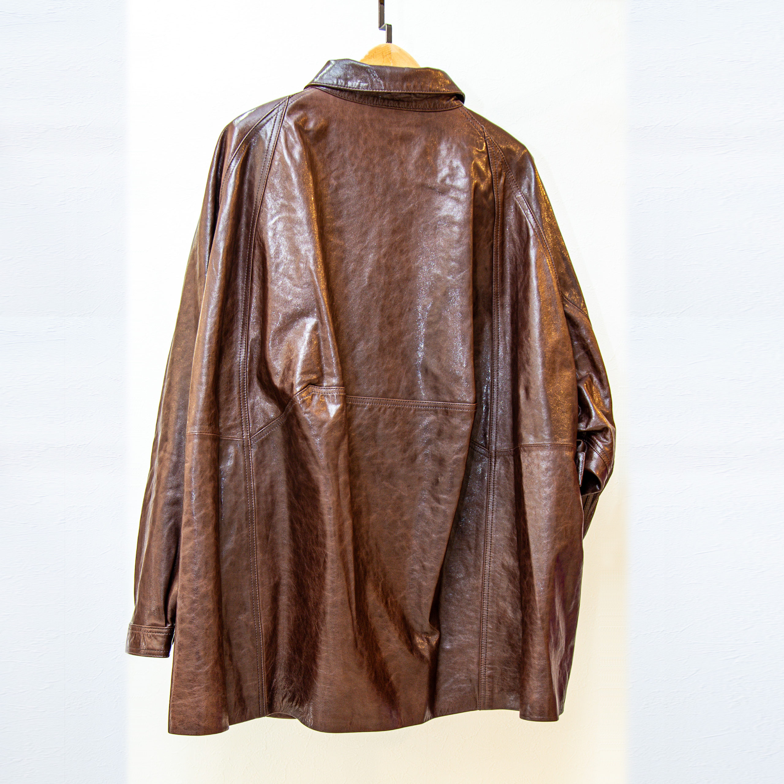 ブラウンレザーシャツ型ロングジャケット |